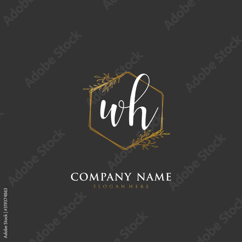 Handwritten initial letter W H WH for identity and logo. Vector logo template with handwriting and signature style.