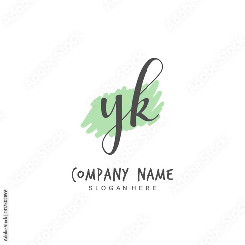 Handwritten initial letter Y K YK for identity and logo. Vector logo template with handwriting and signature style.