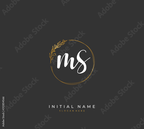 Handwritten letter M S MS for identity and logo. Vector logo template with handwriting and signature style.