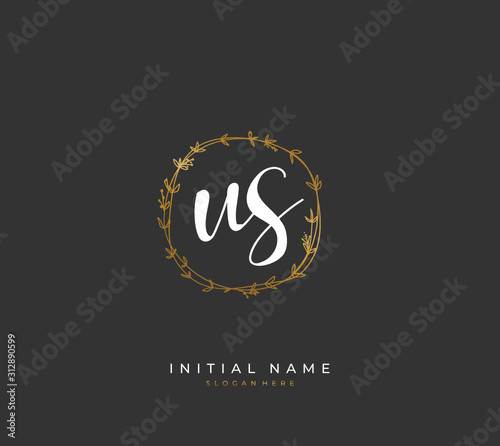 Handwritten letter U S US for identity and logo. Vector logo template with handwriting and signature style.
