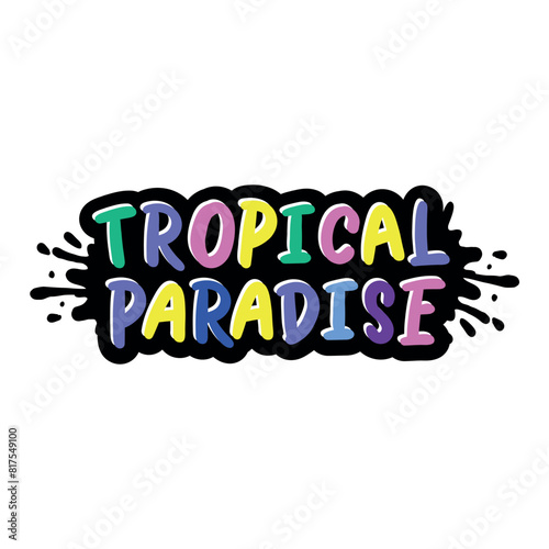 Handwritten phrase TROPICAL PARADISE. Warm season lettering typography for card, invitation. Calligraphy greeting card. Logo, badge, icon, banner, poster, sticker, print.