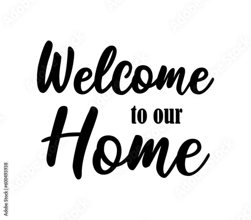 Handwritten welcome to our home phrase lettering. Cute greeting poster or entrance sign print template. Vector quote illustration.