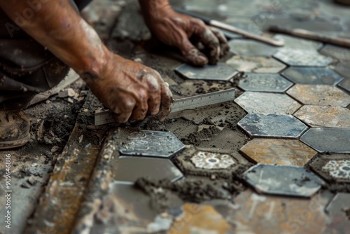 handyman, tile, installation, craftsmanship, flooring, renovation, construction, pattern, hexagonal, precision, home, improvement, work, masonry, design, detail, craft, skilled, labor, builder, tool, hand, grout, surface, texture, artisan, project, building, manual, effort, material, inspiration, repair
