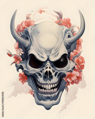 mask, lowbrow, surrealist, illustration, japanese, daemon, art, traditional, theatre, symbolic, expression, graphic, unique, fantasy, mythical, horror, creative, artistic, conceptual, dramatic, cultural, face, ethnic, character, striking, distinctive, iconic, ancient, detailed, mystical, bold, imaginative, fierce, mysterious, ritual, masked, enigmatic, powerful