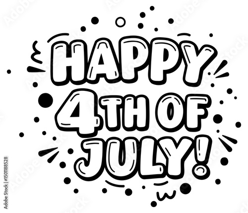 4th july, greeting card, graphic design, typography, lettering, illustration, holiday, celebration, patriotic, american, design element, digital artwork, print, vector, black-and-white, poster, independence