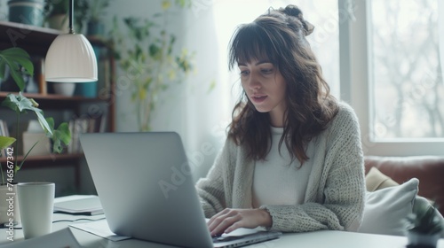 happy, girl, office, work, home, woman, laptop, computer, distance, learning, online, education, bright, white, room, remote, telecommuting, telework, technology, studying, indoor, wireless, connectivity, modern, lifestyle, young, professional, female, workspace, working, digital, cyberspace, home office, adult, career, job, freelance, business, casual attire, leisure, communication, independence, self employed, productivity, comfortable, domestic, cosy, student
