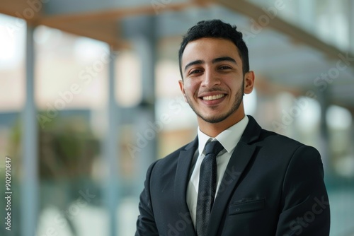 Happy arab business man smiling at the camera. Portrait of confident happy young man in a suit smiling
