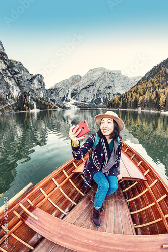 asian, canoe, wooden, 1, autumn, fall, season, woman, travel, nature, vacation, selfie, boat, lake, landscape, person, summer, caucasian, mountain, outdoors, beautiful, di, dolomite, european, female, holiday, phone, view, journey, mountain, sunglasses, smartphone, smiling, river, hike, forest, sitting, scenic, europa, water, tour tourism, lifestyle, people, siam