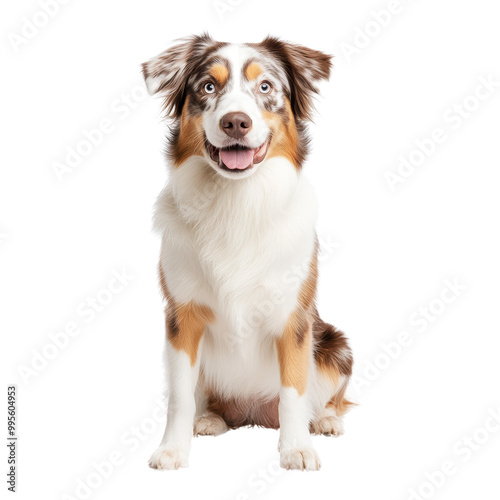 aussie, dog, puppy, pet, animal, canino, mammal, portrait, sitting, smiling, happy, cute, friendly, playful, furry, brown, white, blue eye, black background, studio, isolated, purebred, breed, loyal