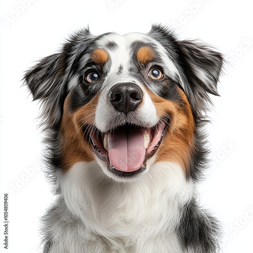 australian, shepherd, dog, isolated, smiling, portrait, pet, animal, friendly, cute, breed, fluffy, fun, cheerful, expressive, canino, joyful, white, background, furry, playfulness, loyalty, happiness, looking, excited, domesticated, single, studio, closeup, head shot, face, eye, active, energetic, colours, nature, adorable, companion, stunning, vibrant, personality, resting, stance, bright, excitement