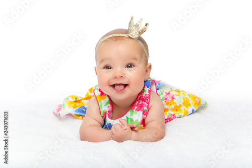 happy beautiful baby girl with crown on head