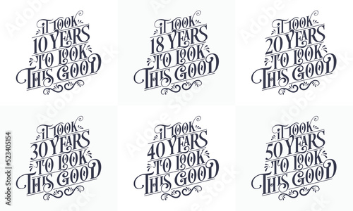 Happy Birthday design set. Best Birthday Typography quote design bundle. It took 10, 18, 20, 30, 40, 50 years to look this good