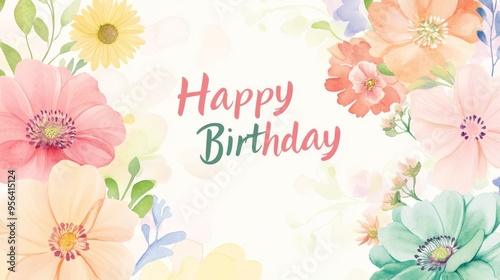 flower, floral, greeting, card, birthday, celebration, wish, happy, art, design, watercolor, illustration, pastel, pink, yellow, green, orange, colourful, nature, love, joy, celebratory, festive, bouquet, bloom, garden, spring, summer, beauty, bright, delicate, elegant, graphic