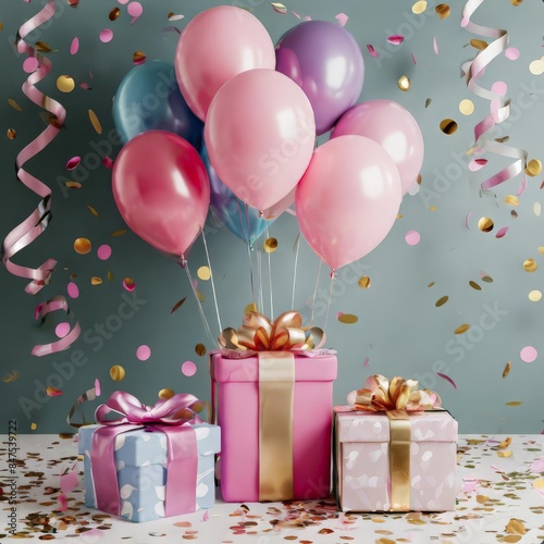 gift, box, birthday, present, christmas, holiday, celebration, bow, ribbon, balloon, decoration, party, vector, card, surprise, christmas, valentine, happy, nubes, pink, illustration, day, greeting, design, anniversary, happy birthday, birthday party