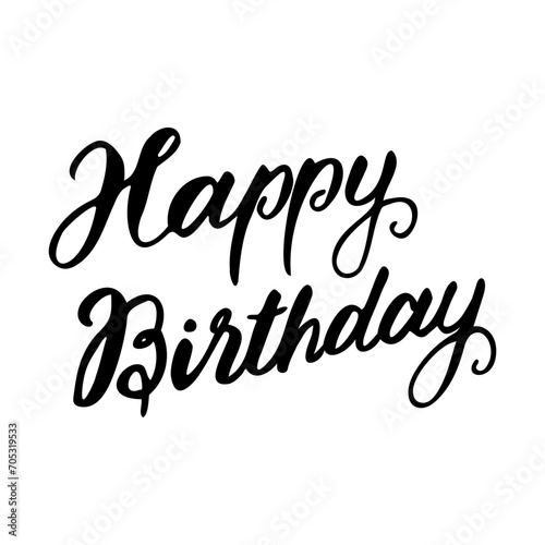 Happy Birthday. Greeting card. Calligraphy, lettering. Hand drawn, design element. Text banner, invitation, postcard. Birthday party