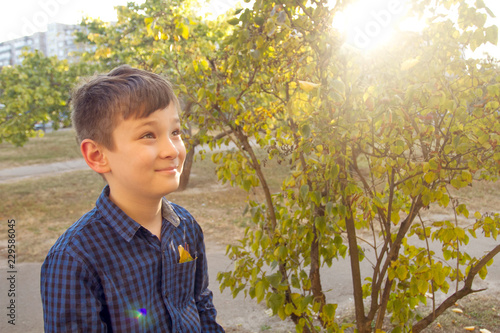 Happy boy have fun in the autumn park