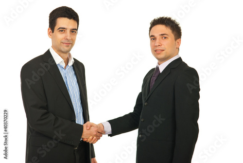 Happy business men gives handshake
