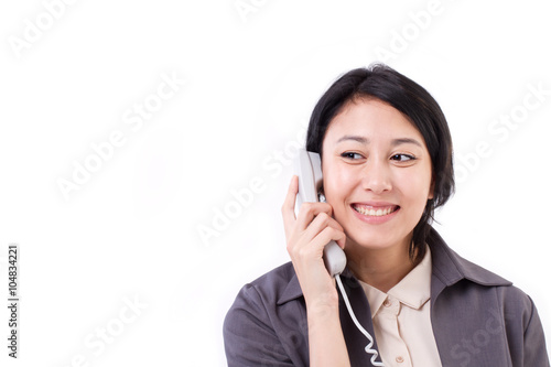 business, woman, phone, happy, phone, people, white, isolated, beautiful, talking, businesswoman, female, young, person, background, office, attractive, girl, executive, portrait, confident, asian, smile, professional, work, adult, 1, smiling, success, model, caucasian, studio, lady, formal, suit, grey, hand, holding, communicate, communication, speaking, service, client, helpline, line, voice, call, contact, successful