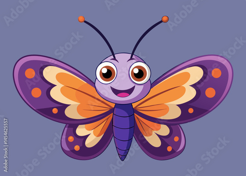 Happy Cartoon Butterfly Illustration Purple Orange Wings