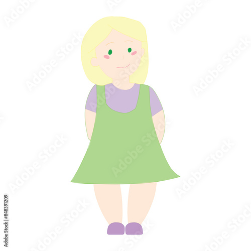 Happy Cartoon Girl in Green Dress Vector Illustration EPS10