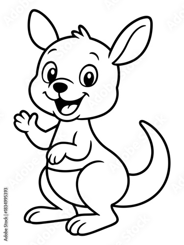 Happy Cartoon Kangaroo: A delightful cartoon kangaroo waves a cheerful greeting. The image conveys the charm of wildlife.