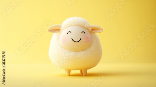 lamb, sheep, cartoon, happy, yellow, background, spring, greeting, animal, cute, fluffy, illustration, three-dimensional, rendering, pastel, cheerful, joyful, adorable, farm, nature, wool, soft, playful, friendly, innocent, sweet, smile, character, graphic, design, image, artwork, mascot, icon, vector, baby, children, children, fun, holiday, easter, season, card, postcard, banner, website
