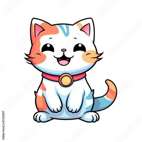 Happy cat vector clipart. Good for fashion fabrics, children’s clothing, T-shirts, postcards, email header, wallpaper, banner, events, covers, advertising, and more.