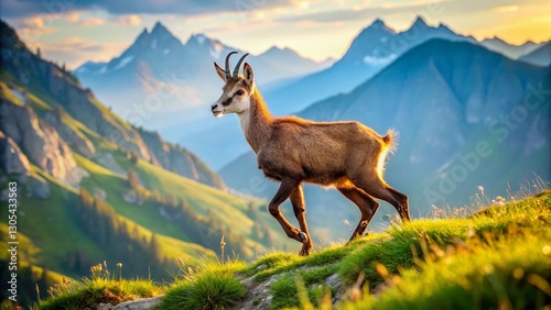 Happy Chamois Buck Yearling Hunt - Majestic Alps Summer Morning Candid Photo