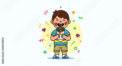 Happy Child Consuming Delicious Food, Enjoying A Tasty Meal In A Playful Illustration