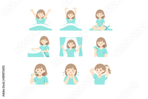Happy child emotions and daily activities flat illustration set for feelings, routine and wellbeing