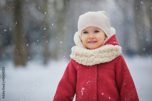girl, baby, toddler, children, children, children, childhood, small, happy, people, person, winter, winterly, season, seasonal, outdoors, snow, snowflake, white, snowfall, weather, frosty, jan, february, december, hat, foulard, pink, knitted, happiness, joy, cheerful, play, playful, walking, city, urban, park, coat, chilly, fun, game, leisure, playtime, nature, snowy