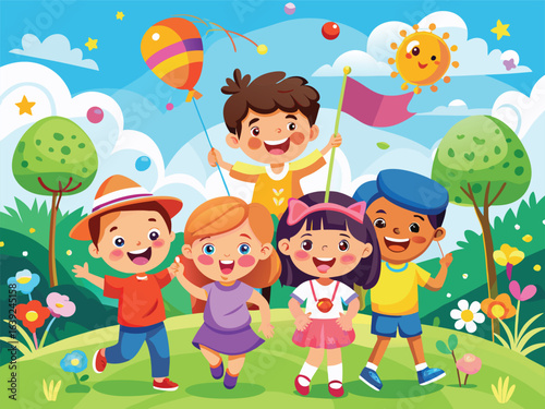 cartoon, children, boy, children, children, illustration, vector, school, people, birthday, children, playing, fun, family, balloon, childhood, baby, smile, party, funny, joy, summer, love, art, holiday