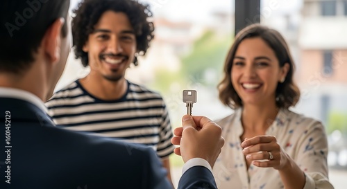 real, estate, home, buying, new, house, key, couple, happiness, success, achievement, property, ownership, transaction, agent, broker, handing, over, receiving, joyful, excited, moving, dream, first, investment, closing, deal, agreements, celebration, future