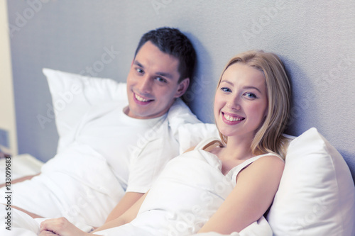 happy couple sleeping in bed