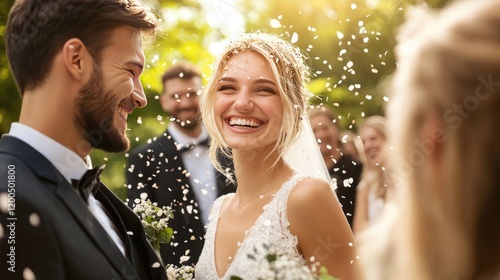 wedding, couple, bride, groom, happy, love, celebration, reception, marriage, wedding, bridesmaid, confetti, joyful, smiling, sunlight, romantic, portrait, beautiful, fashion, dress, suit, tuxedo, bouquet, flower, engagement, summer, fall, elegant, glamour, honeymooners, closeup, natural light, soft focus, detailed, hi-res, bridal, detail, tenderness, bliss, emotional