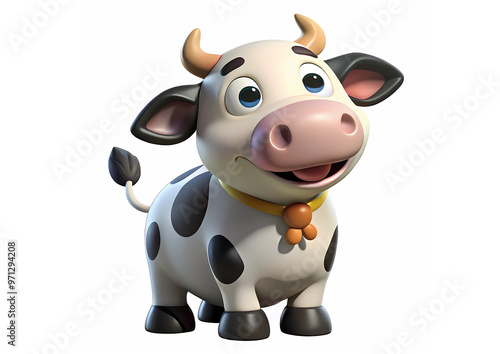 Happy Cute Cow Cartoon is a cheerful Character smiling 3d render isolated on a white background