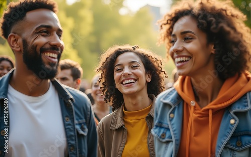Happy diverse people enjoying in the park. High quality