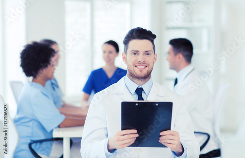 happy, doctor, man, medicine, clipboard, hospital, conference, clinic, male, office, meeting, consultation, seminar, looking, smiling, health care, health, medicals, people, professional, profession, person, concept, job, medic, occupation, american, black, multiracial, international, colleague, team, group, indoor, co-worker, appointment, white, coat, uniform, nurse, young, man, woman