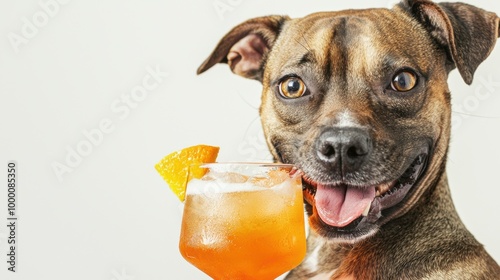 Happy Dog Enjoying a Tropical Beverage on a Summer Vacation