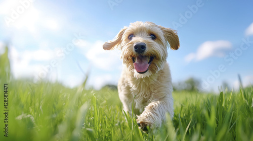 dog, running, happy, grass, sunny, pet, animal, nature, playful, cute, fur, canino, joyful, summer, field, bright, blue, sky, green, landscape, cheerful, companion, small, breed, active, freedom, fun, energy, happiness, excitement, furry, tail, smile, sunshine, vibrant, fresh, environment, park, scene, adventure, exploration, love, companionship, lively, carefree