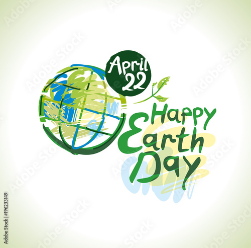 Happy Earth Day hand lettering template. April 22. Painted planet on and handwritten words. Vector Earth day illustration.