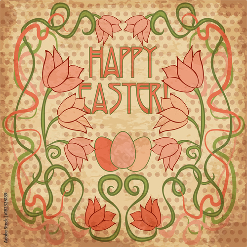 design, card, easter egg, tree branch, holiday, egg, god, old, age, retro, cover, easter, antique, ancient, vintage, catholic, religion, orthodoxy, christian, peace, religious, spirituality, refraction, crucifix, congratulation, happy easter, ornament, leaf, nature, paper, decor, art deco, modern, wallpaper, decorative, rich, border, vignette, bloom, frame, flower, floral, art nouveau, seasonal