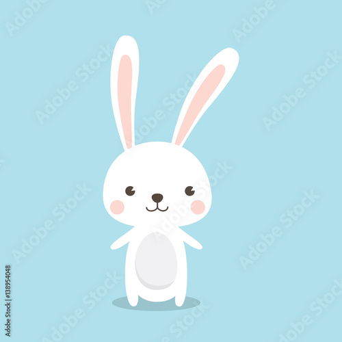 Happy Easter Bunny. Vector illustration for Easter greeting card, invitation with white cute rabbit on sky blue background.