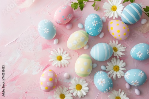 Happy Easter Eggs Basket Cobalt blue. Bunny hopping in flower red onion decoration. Adorable hare 3d heartfelt sentiment rabbit illustration. Holy week easter festive hunt Cheerful card orange spice