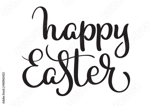 Happy Easter words on white background. Calligraphy lettering Vector illustration EPS10