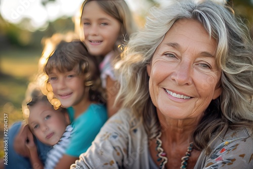 Happy Elderly with Grandchildren Smiling Senior with Loving Family