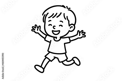 happy, energetic, boy, children, children, running, jumping, leaping, open arms, cheerful, joyful, smiling, playful, childhood, innocence, carefree, outline, silhouette, cartoon, black, line, art, minimalist, simple, vector, illustration, transparent, background, isolated, fun, activity, movement, motion, excitement, youth, joy, happiness, lifestyle, people, active, outdoors, leisure, summer, boyhood, school age