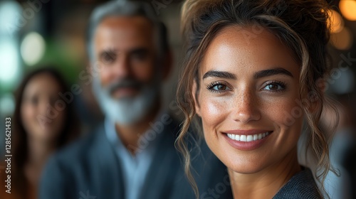 Happy executives smiling together in a professional setting, showcasing teamwork and collaboration. Their positive energy reflects a successful project environment.