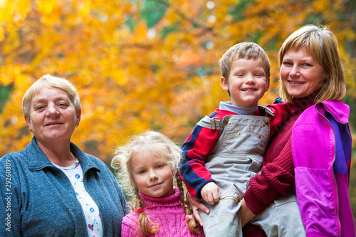 60s, autumn, beautiful, beauty, boy, caucasian, cheerful, children, childhood, daughter, environment, family, foliage, forest, girl, grandchild, grandmother, grandson, happiness, happy, harmony, leaf, leisure, little, love, lush, mature, mother, nature, outdoors, park, people, portrait, season, smile, smiling, son, tranquil, tree, walking, woman, yellow