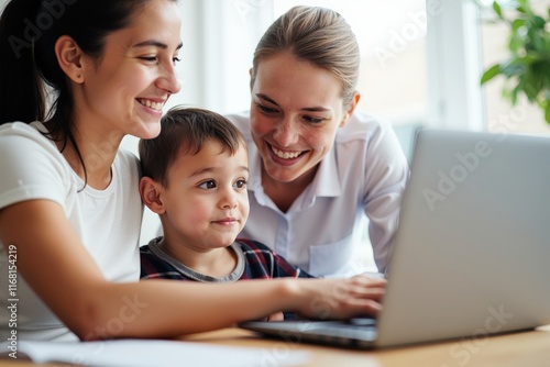 Happy Family Bonding Over Laptop: Perfect for Advertising Family-Friendly Tech Products and Services